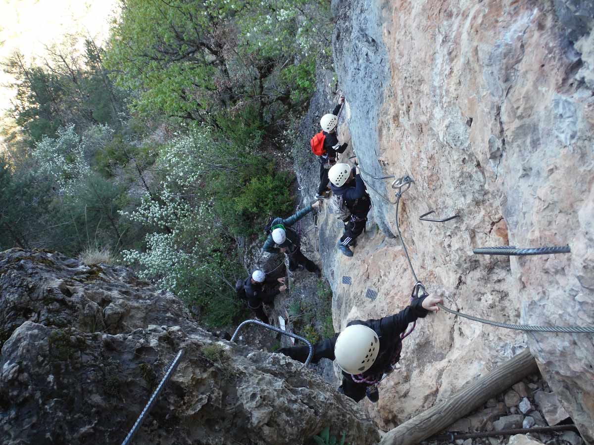 De Via Ferrata is rechtstreeks geïnspireerd op de “spoorwegen” in de Italiaanse Dolomieten en is een sportieve route die is uitgestippeld op een rotswand en is uitgerust met kabels, sporten, bruggen (apen-, Nepalese, Tibetaanse) en soms tokkelbanen. De beoefenaar, die voortdurend vastzit aan een veiligheidskabel, klimt zelfstandig of onder begeleiding en trotseert de zwaartekracht in een uitzonderlijke natuurlijke omgeving. Het is de ideale activiteit voor wie op zoek is naar spanning zonder over de technieken van het pure klimmen te beschikken.