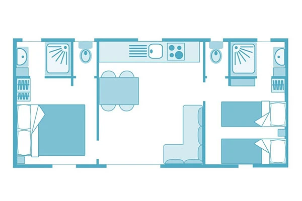 Er zijn verschillende modellen beschikbaar. Van 4 personen met 2 slaapkamers en 2 badkamers tot 8 personen met 4 slaapkamers en 4 badkamers, er is voor elk wat wils en voor elk aantal personen!