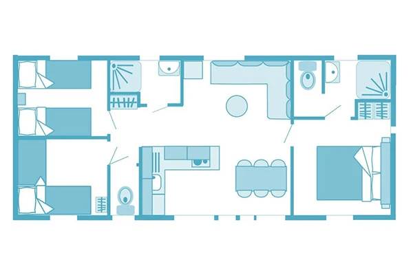 Er zijn verschillende modellen beschikbaar. Van 4 personen met 2 slaapkamers en 2 badkamers tot 8 personen met 4 slaapkamers en 4 badkamers, er is voor elk wat wils en voor elk aantal personen!