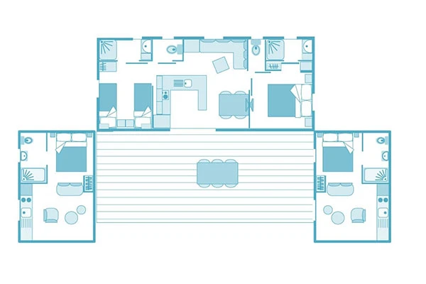 Er zijn verschillende modellen beschikbaar. Van 4 personen met 2 slaapkamers en 2 badkamers tot 8 personen met 4 slaapkamers en 4 badkamers, er is voor elk wat wils en voor elk aantal personen!
