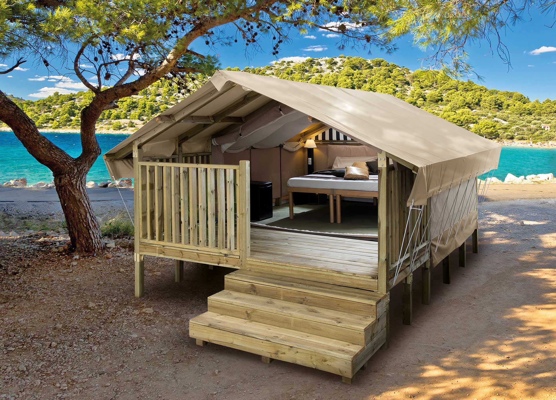 Daarnaast maakt een lodgetent uw ervaring nog completer: een charmante en exotische ruimte, ideaal om extra gasten te ontvangen met behoud van ieders privacy.